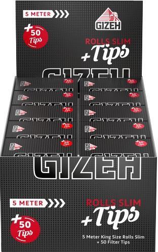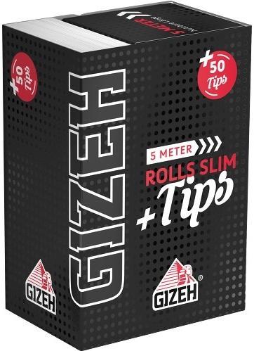 Mit GIZEH BLACK® Rolls Slim + Tips erhältst du neben 50 vorperforierter Filter Tips auch 5 Meter unserer hauchdünnen Blättchen im Slim Format.