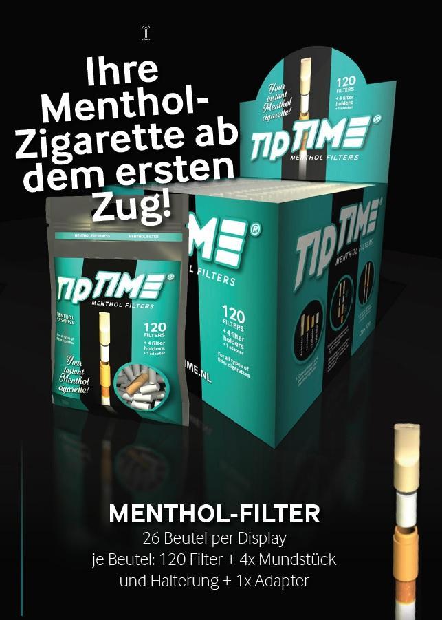 Lust auf eiskaltes Menthol? Die Tip Time Mentholfilter erweitern das Aroma Ihrer Lieblingszigarette um die beliebte Note und sorgen für maximalen Menthol-Geschmack!